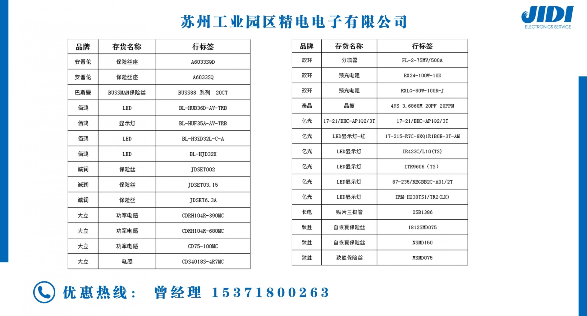 2005年03月, 蘇州工業(yè)園區(qū)精電電子有限公司正式成立于蘇州工業(yè)園區(qū)。2005年12月, 成為美國(guó)AEM科技華東區(qū)代理商。2006年10月, 成為廣東風(fēng)華高新科技股份有限公司代理商。2007年04月, 正式簽約日本安全電具。成為在華東區(qū)唯···